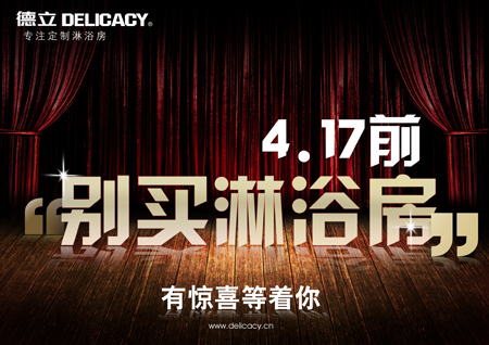 真相大白!装修的业主们,一定要记住2013年4月17日前千万不要购买淋浴房,德立淋浴房“五一大放价”给您的惊喜绝对是超越其他品牌的,让您实惠购物享受高品质淋浴生活!