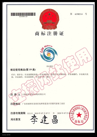 立壕精緻建材 LOGO商标注册证